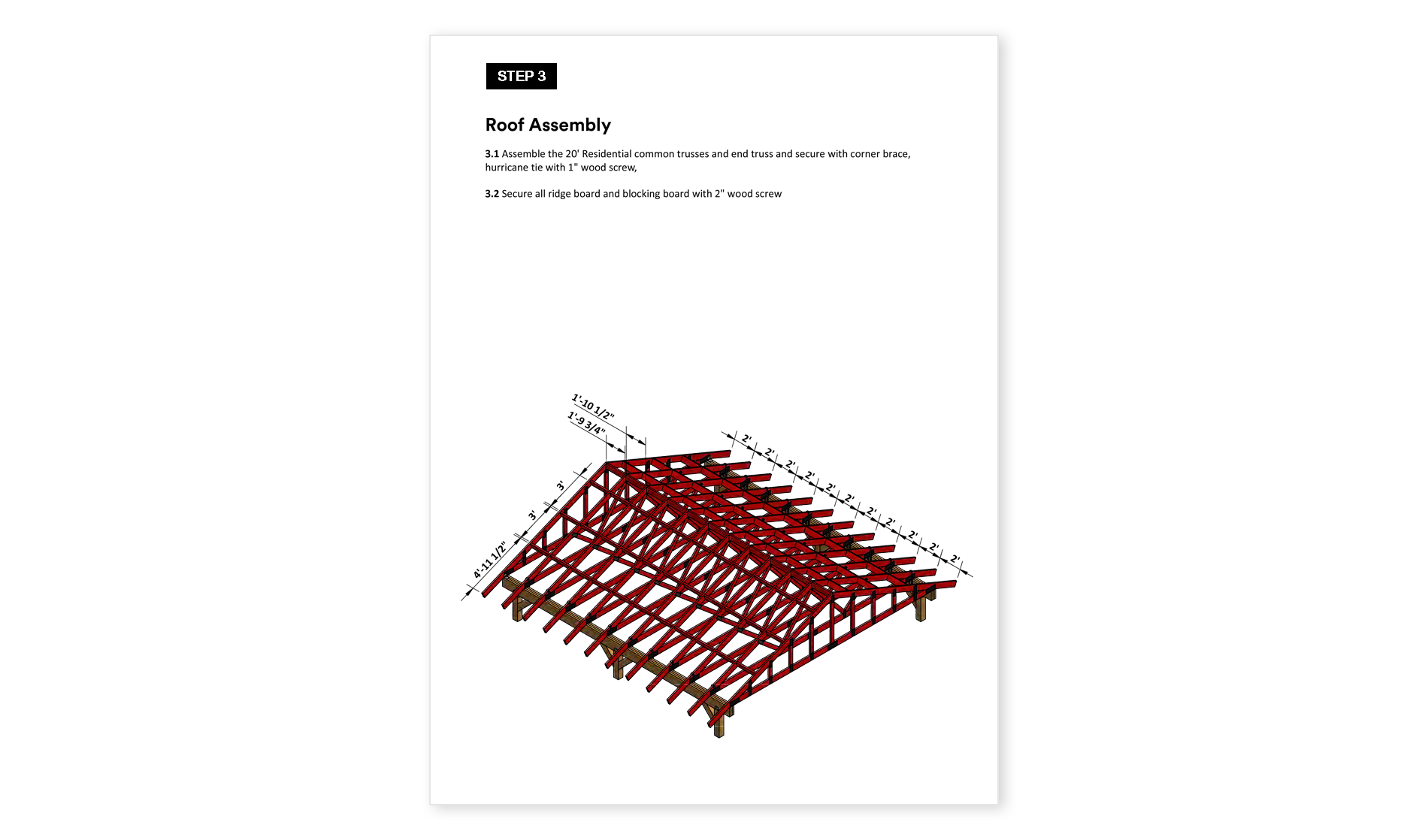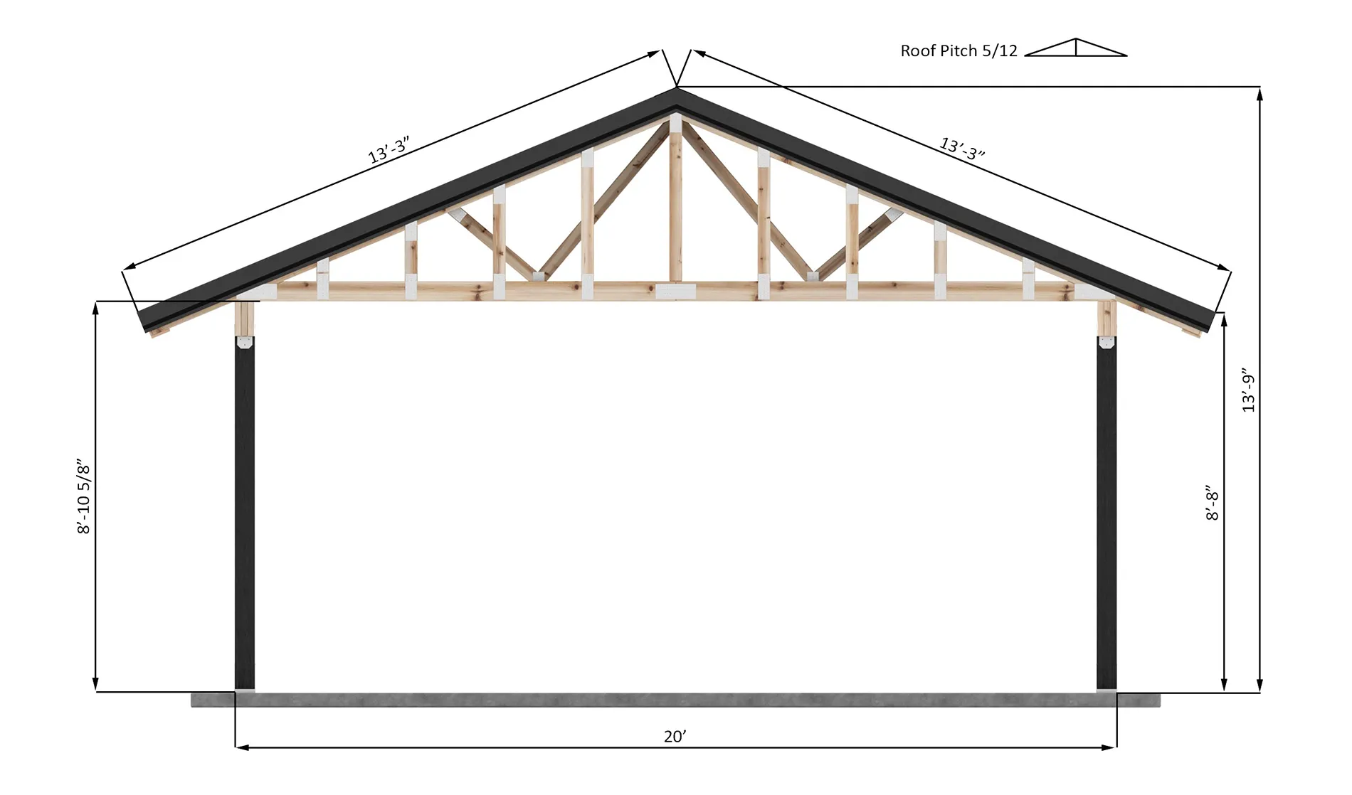 As an open-sided structure, this carport offers excellent ventilation and easy access from all directions. The plans are designed for a structure that is not only functional but also visually appealing, with the exposed trusses in the gable ends showcasing the beauty of the structural craftsmanship.