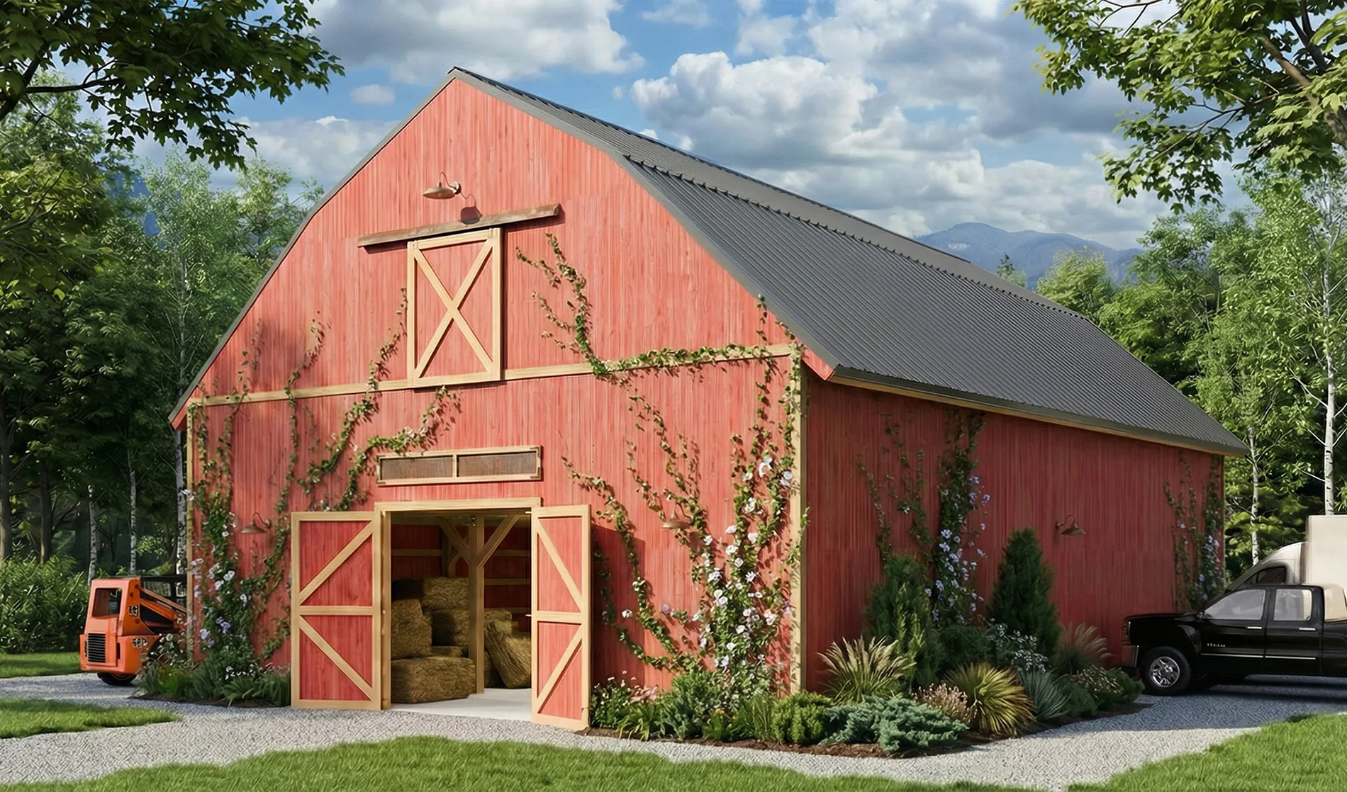 Construct a large and versatile 40×60 post-frame barn with this comprehensive DIY plan, designed to provide reliable space for vehicles, heavy equipment, tools, or a fully equipped workshop. With its durable structural system and timeless barn-inspired appearance, this building is well-suited for agricultural, residential, or commercial applications.