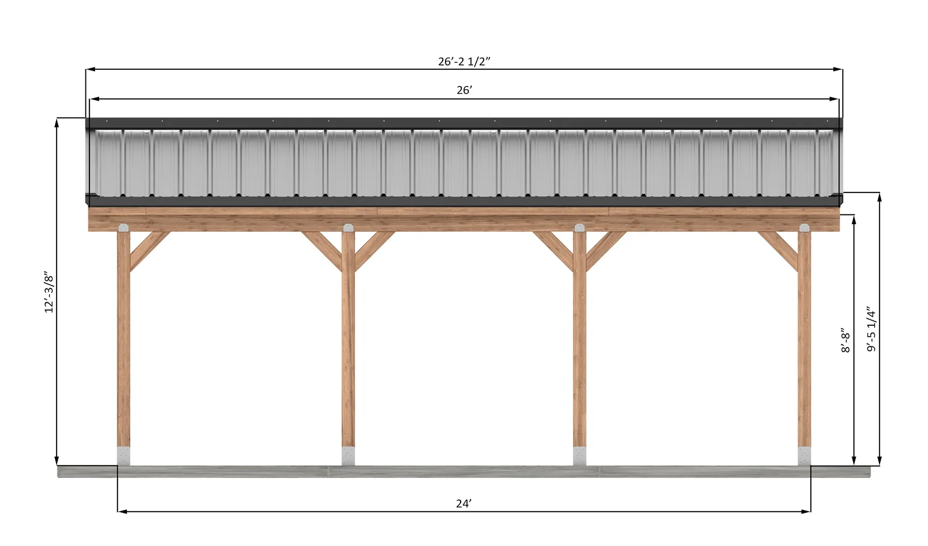 The classic lean-to design offers a space-efficient solution, utilizing your existing house wall for support. The simple yet effective single-slope roof angles down and away from your home, ensuring proper drainage and weather protection. Decorative curved braces add a touch of traditional charm while enhancing structural stability.