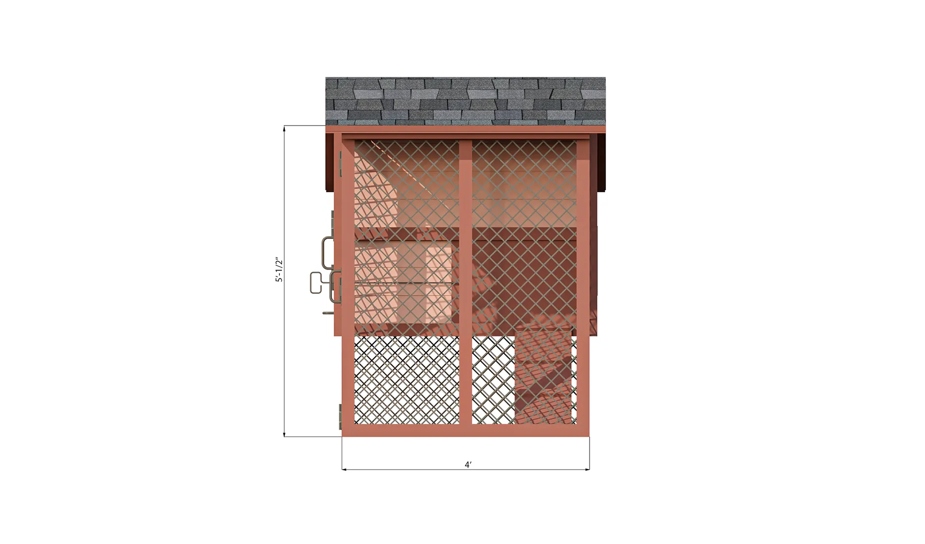 The elevated coop design keeps the roosting area off the cold, damp ground, which is critical for the flock’s health in wet or cool conditions. The covered area beneath the coop also provides a dry, shaded, and wind-sheltered space. Inside the coop, our plans feature optimal perch placement designed according to chicken roosting preferences.