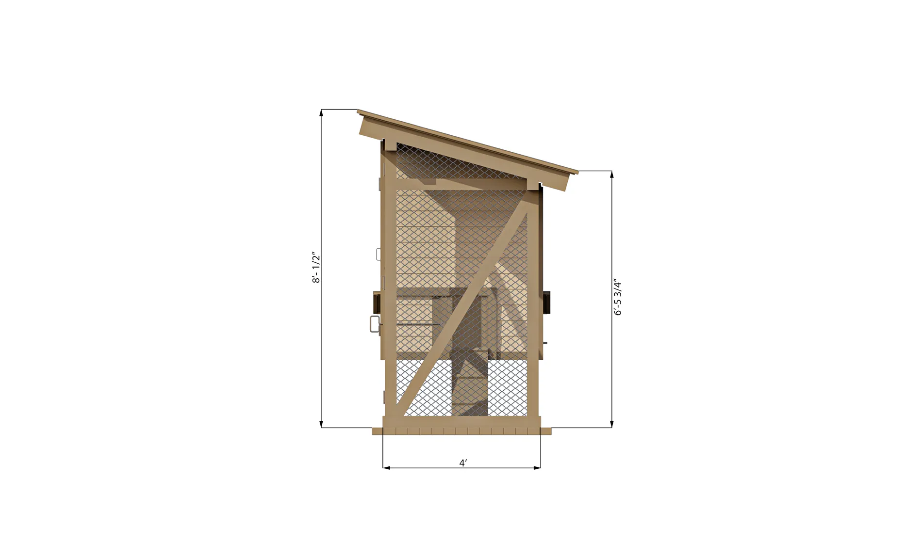 The single-slope roof efficiently sheds rainwater and handles snow, directing it to the back of the coop. The overhanging roof design is ideal for adding well-protected ventilation, which is critical in winter to prevent respiratory issues and frostbite in your flock.